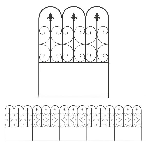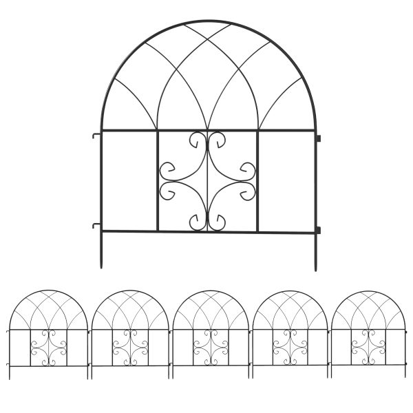 Set de 5 garduri de grădină decorative din sârmă metalică antirugină pentru exterior, negru | Aosom Romania