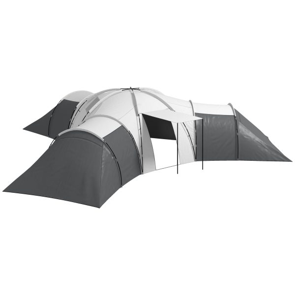 Cort de Camping Impermeabil cu 4 Locuri, Zona Separata de Dormit si Living, Cort din Poliester, 430x300x190 cm, Gri
