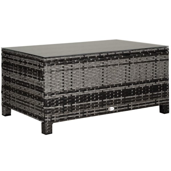 Măsuță de grădină blat din sticlă securizată 5 mm ratan împletit 85 x 50 x 39 cm Max. 70 kg gri | Aosom Romania